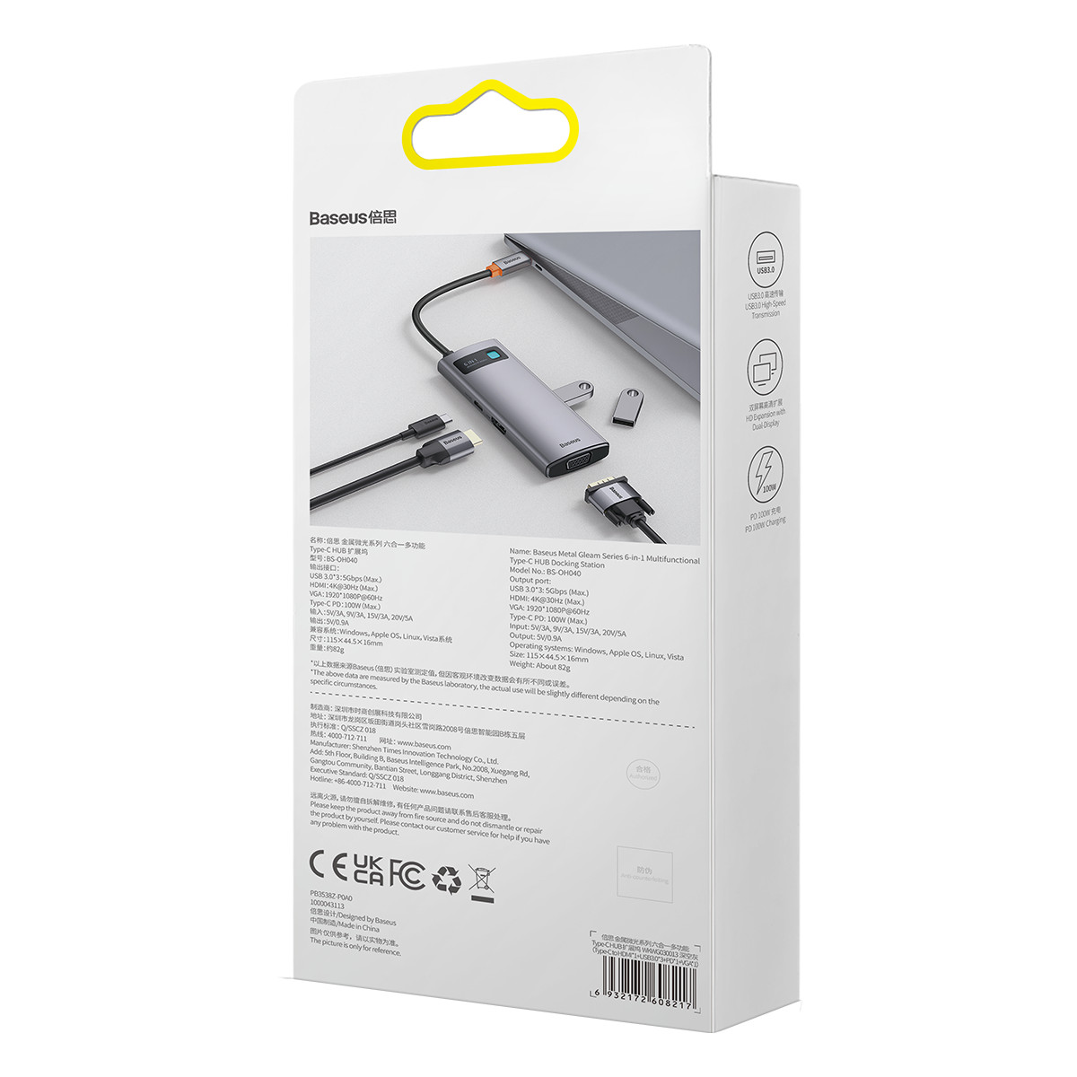 - Mã sản phẩm: Cổng chuyển 6in1 USB-C to HDMI/VGA/USB/C Baseus