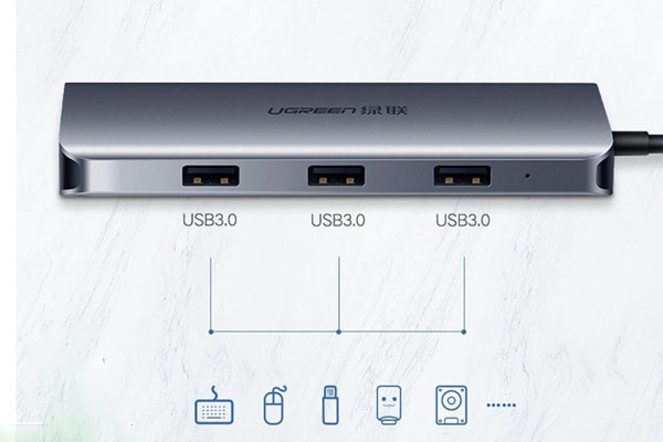 Ugreen 60557 - Cáp USB Type C to HDMI, VGA, Lan, USB 3.0, USB C